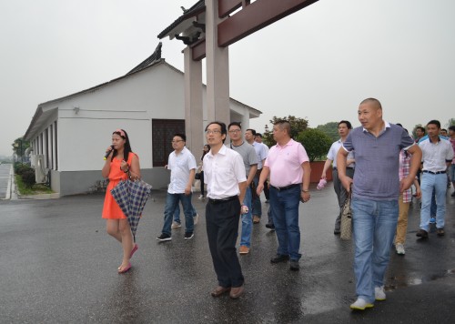 下午1:30分,天空下著大雨,但是大家還是按照計劃前往參觀學(xué)習(xí)的第一站:位于錦豐鎮(zhèn)的沙洲縣抗日民主政府紀(jì)念館。紀(jì)念館以沙洲地區(qū)抗日斗爭為背景,分中華怒吼、國恥家恨、“江抗”東進(jìn)、眾志成城、浴血奮戰(zhàn)、百折不撓、沙洲光復(fù)、名錄八個部分,以文字、圖表、照片、塑像、實物等形式,全面具體地展現(xiàn)了中國共產(chǎn)黨領(lǐng)導(dǎo)下的沙洲兒女,在抗日戰(zhàn)爭時期為保衛(wèi)家園和祖國領(lǐng)土完整,建立抗日民主政府,軍民攜手頑強抵御日本侵略者的英勇事跡。參觀中,面對一段段承載著革命歷史記憶的圖片和實物,在解說員的講解下,大家或凝神品讀,或低語交流,紛紛表示:緬懷革命先烈,特別是故土先輩們可歌可泣的偉大壯舉,對于我們進(jìn)一步了解張家港的歷史知識,提振工作干勁無疑是一大促進(jìn)。