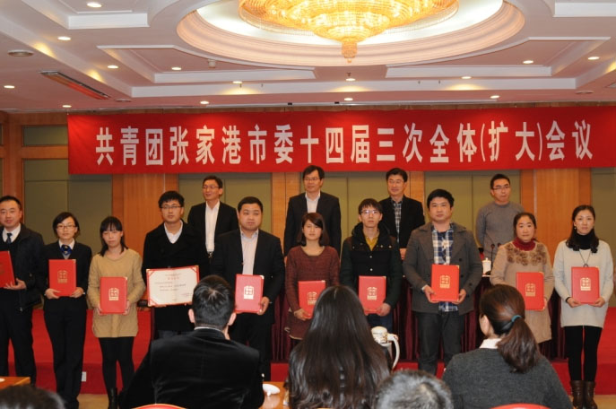 到會領(lǐng)導為2013年度創(chuàng)新創(chuàng)優(yōu)成果獎、2013年度張家港市五四紅旗團委、團支部頒發(fā)了榮譽證書!
